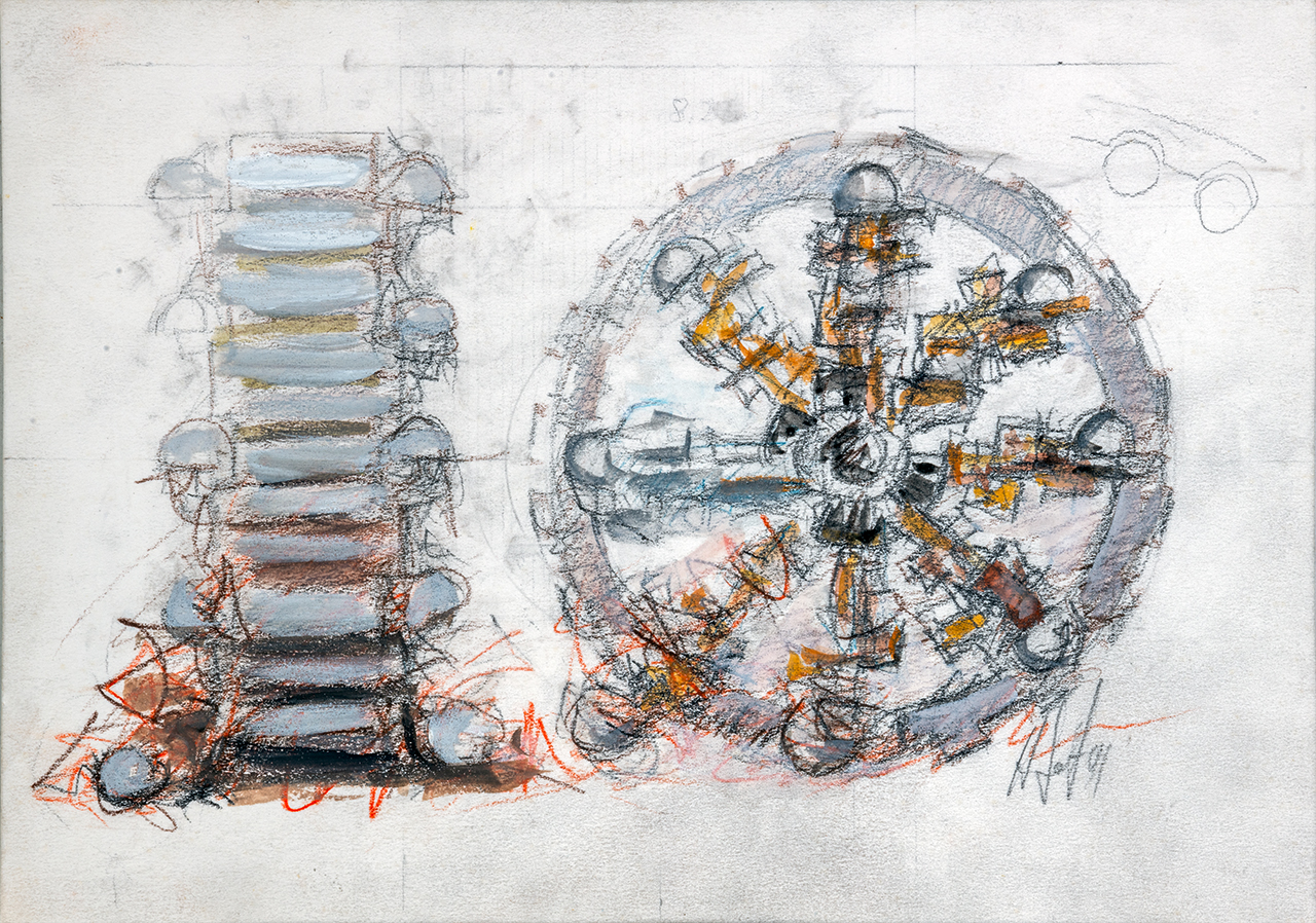 Ein Projekt, in dem Horst Solf seinen Zyklus Selektion weiter interpretiert als Entmenschlichung – der Mensch wird zusehends zur Maschine. Der Künstler treibt es grafisch auf die Spitze: Der Mensch wird selbst zur Waffe.